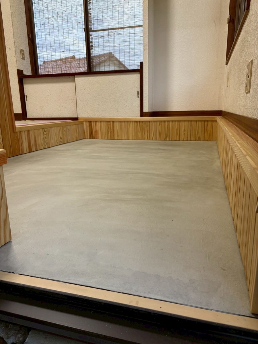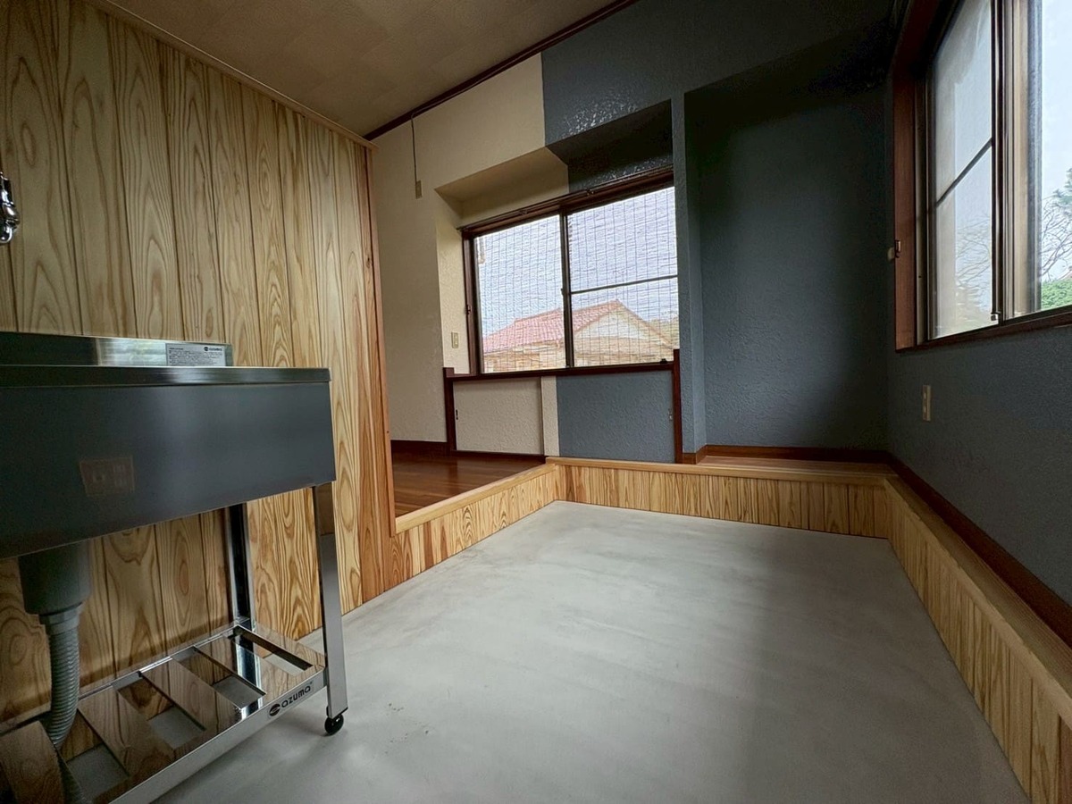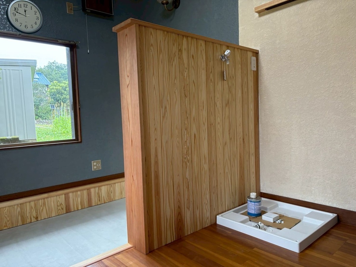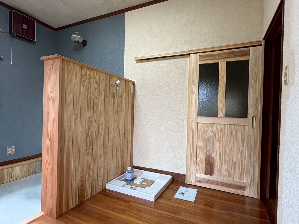 1段上がった3畳ほどスペースには洗濯機を設置し、洗濯等が行える作業スペースとなりました。
